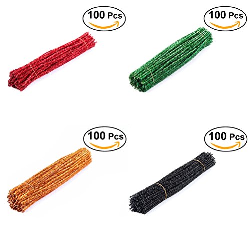 Package Including 100 x Pipe Cleaners Crafts Chenille Stems (Red) 100 xPipe Cleaners Crafts Chenille Stems (Green) 100 x Pipe Cleaners Crafts Chenille Stems (Orange) 100 x Pipe Cleaners Crafts Chenille Stems (Black) 0