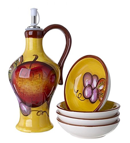 -. Brand : 5th Ave Store -. ProductGroup : Kitchen -. ProductTypeName : KITCHEN -. Title : 5th Ave Store Cucina Italiana Ceramic Olive Oil Dispenser Bottle With Set of 4 Dipping Plates