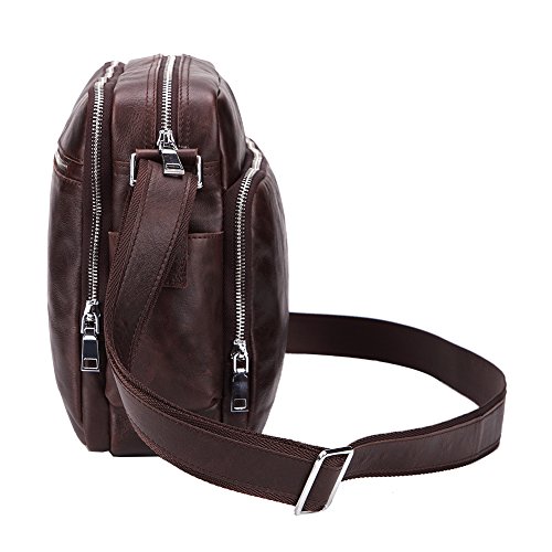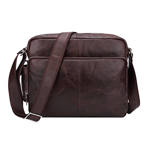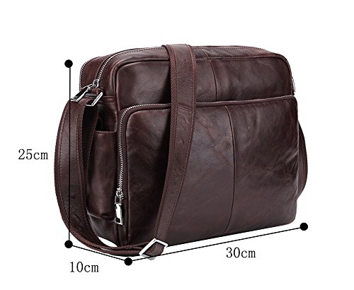 Features: Material: Genuine Leather Size: L30cm×W10cm×H25cm (11.8"×3.9"×9.8") Stucture: 1 zipper main pocket, 1 U-shape zip vice pocket, 1 front multifunction pocket, 1 rear zipper pocket and 2 side pockets Usage: Shoulder crossbody bag, messenger bag, briefcase Flexible,multifunctional,convenient,durable. Used in different occasions, business, school, travel, walking on street, the best choice for hiking, cycling, shopping and so on