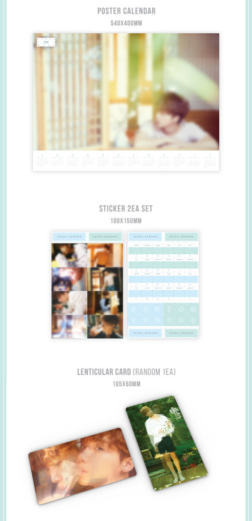 Korean Star Collectibles Jeong Se Woon 2018 Season Greeting (Desktop Calendar + Diary + Poster + Sticker + Lenticular Card + Postcard + Paper Diffuser + Making DVD)