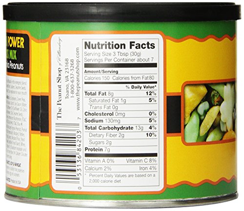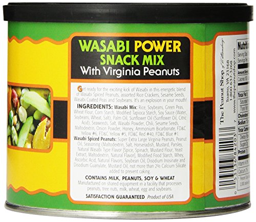 -. Binding : Grocery -. Brand : The Peanut Shop of Williamsburg -. EAN : 0053136842037 -. Feature : Distinctively unique and different And unbelievably crisp / Our same Super Extra Large Handcooked Virginia Peanuts are lightly seasoned in a variety of flavors / Try a tin for yourself and give several as gifts to those you wish to receive the finest -. Label : The Peanut Shop of Williamsburg -. Manufacturer : The Peanut Shop of Williamsburg -. Model : 84203 -. MPN : 84203 -. NumberOfItems : 1 -. PackageQuantity : 1 -. PartNumber : 84203 -. ProductGroup : Grocery -. ProductTypeName : GROCERY -. PublicationDate : 2012-04-26 -. Publisher : The Peanut Shop of Williamsburg -. Studio : The Peanut Shop of Williamsburg -. Title : The Peanut Shop of Williamsburg Wasabi Power Snack Mix, 8-Ounce Tin -. UPC : 053136842037