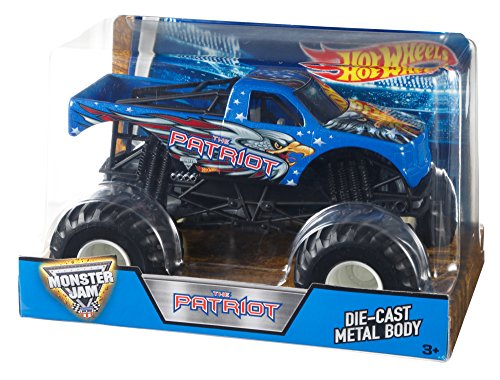 -. Binding : Toy -. Brand : Hot Wheels -. EAN : 0887961232073 -. Feature : With even more accurate designs, this 1:24 scale truck is made with durable die-cast metal parts / Decorated just like its high-flying, car-crushing, oversized inspiration / Its monster wheels are ready for mega tough terrains, too! / Pick up the other vehicles in the collection and head to the Monster Jam arena for head-to-head battle! / Who will dominate and who will be destroyed? -. Genre : Sport -. IsAdultProduct : 0 -. Label : Mattel -. Manufacturer : Mattel -. Model : DJW87 -. MPN : DJW87 -. PackageQuantity : 1 -. PartNumber : DJW87 -. ProductGroup : Toy -. ProductTypeName : TOYS_AND_GAMES -. Publisher : Mattel -. Studio : Mattel -. Title : Hot Wheels Monster Jam 1:24 Patriot -. UPC : 887961232073 -. Warranty : 1 year warranty against manufacturer defects