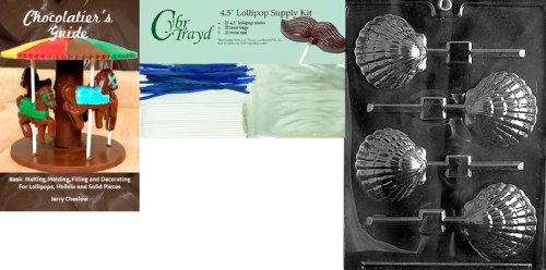 Cybrtrayd "Shell Lolly Like N003" Nautical Chocolate Mold with Chocolatier's Bundle, Includes 25 Lollipop Sticks, 25 Cello Bags and 25 Blue Twist Ties