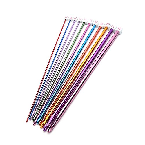 Eshylala 11 Pcs Crochet Hooks Needle Set Aluminum Afghan Knitting Needles,10.6 Inch, Multicolor,11 Different Size (2.0mm-8.0mm)