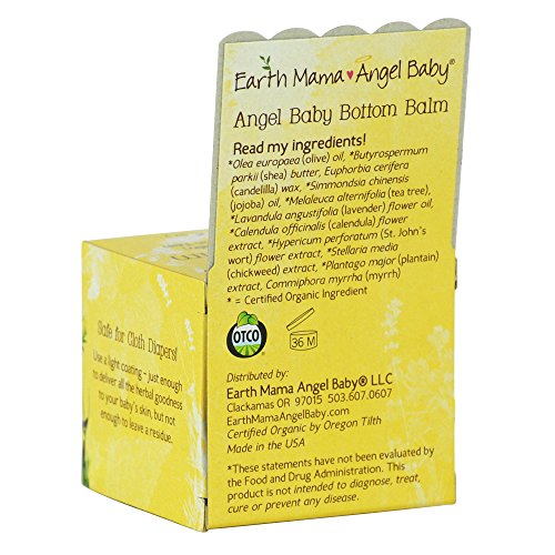 Earth Mama's #1 best selling salve, hospital recommended Angel Baby Bottom Balm is a safe, effective, herbal diaper cream that safely battles existing diaper rash and protects while allowing skin to breathe, without creating an impermeable barrier that can trap bacteria and yeast. It's the only ointment made with Earth Mama's proprietary blend of naturally antibacterial and antifungal organic herbs, Shea butter and pure essential oils, for the diaper area, yeast, itchy bug bites, scrapes, and more. From diaper bag to your family's first aid kit it’s nature’s multi-tasking wonder balm. Angel Baby Bottom Balm is safe for cloth diapers! Hospital recommended, clinically tested, dermatologically tested, non-irritating, and free from the most common allergens. Formulated by a Nurse and Herbalist, non-toxic, naturally, never any toxins or worrisome ingredients, and rated 0 for toxins on EWG's Skin Deep Cosmetics Database. No artificial fragrance or dyes, and no petroleum products, mineral oil, Vitamin E, phthalates or parabens. Naturally vegan and gluten-free. Certified by Oregon Tilth. These statements have not been evaluated by the Food and Drug Administration. This product is not intended to diagnose, treat, cure or prevent any disease. Made in the USA.