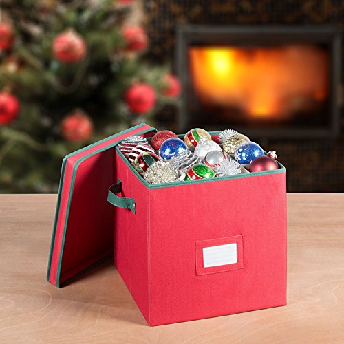 🎄CONVENIENT TO CARRY - The storage box is equipped with sturdy handles in a contrasting color, making it easy to carry around and store it up wherever there is space. The dimensions of the box are 12” x 12” x 12” and comes with a removable top.