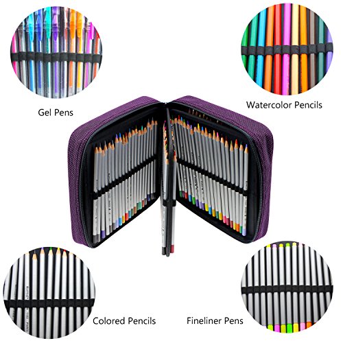 NIUTOP Niutop 160 Slots Oxford Mappchen Tragbar Mehrschicht Stationare Tasche Buntstifte Federmappchen fur Prismacolor Bleistifte, Crayola Buntstifte, Marco Buntstifte, Polychromos Buntst
