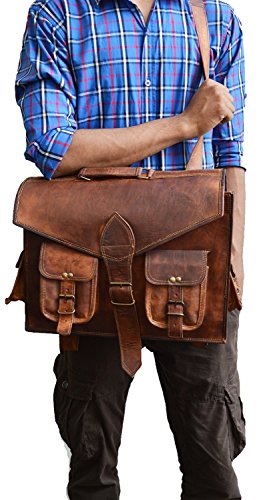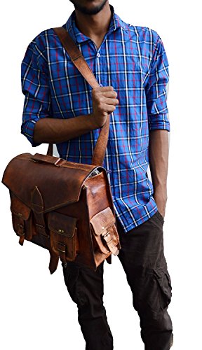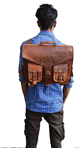 -. Feature : Leather laptop messenger bag cum backpack for men and women. Dimensions : (approx) 16 X 12 X 5 inch. (height , breadth, inner depth ) -40 cm X 30 cm X 13 cm . 25 inch shoulder drop (54 - 57 inch / 127 cm adjustable sling) Slightly varies as each handmade / Convertible backpack / messenger bag / briefcase satchel Three partition inside for laptop,files etc. Has four outer small pockets for misc items.Can be used as an office bag, tow zippered pockets at inner front and rear. / This briefcase comes with brass polished buckles , 100% rust free. adjustable sling. leather laptop bag Can hold 15.6" Laptops. / material : high quality leather Has an inner stitched canvas for durability.The laptop partitions are padded / The color of the bag may vary from twany to crimson depending upon the leather. However, with use the leather darkens and color matches close to the one in the photo.