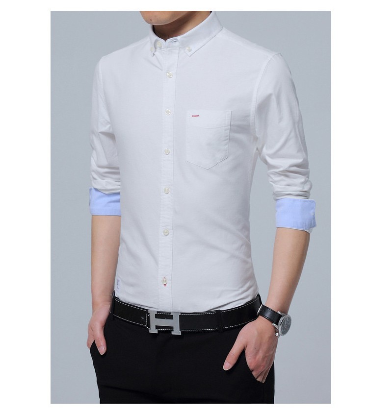 【製品仕様】■商品名シルエットの綺麗なシンプルな無地シャツ。腕をまくったときに、チラリと見える生地の切り替えがおしゃれ。■サイズ/寸法M,L,XL,XXL,XXXL,XXXXL■素材/材質コットン■色/カラー01ホワイト02ネイビー03ブルー04グレー