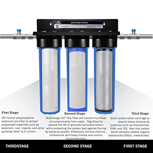 Part Number:MR-3030 Item Weight:54.2 pounds Product Dimensions:30 x 24 x 12 inches Item model number:MR-3030 Size:20" big blue Color:Blue Pattern:big blue Item Package Quantity:1 Certification:Not Applicable Included Components:complete with filters Batteries Included?:No Batteries Required?:No Warranty Description:NOTE: It is the responsibility of the purchaser to insure that all fittings are tight and that codes are met. WARNING: Household water pressure can cause leaks and damage the surrounding building or fixtures if not properly installed. User must check all fittings for tightness. Apex assumes no responsibility for water damage due to leaks. Shipping Weight:54.2 pounds (View shipping rates and policies)