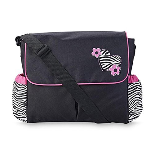 Combine function and fashion when you take your little one out for the day with this Tender Kisses messenger diaper bag featuring a fashionable zebra print. A super-spacious interior lets you organize and take and tote baby's must-haves, while colorful contrast piping and a zebra-print applique heart on the front flap add wild appeal.