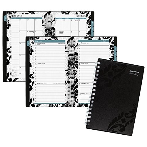 -. Feature : Madrid design is classic black and white floral with accents of teal to add style to your planning and organizing. 12 month date range covers a full academic calendar year from July 2016 to June 2017. / 12 month date range covers a full academic calendar year from July to June. The Perfect planner for teachers, administrators, parent and other professionals used to planning on this time frame. / 1 week per 2 page spread for detailed scheduling. Monday-Friday features hourly appointments from 8:00 a.m. To 5:00 p.m. While Saturday and Sunday are untimed. 1 month per 2 page spread for big picture plans. Ruled daily blocks. 4.38 x 6.25" page size.