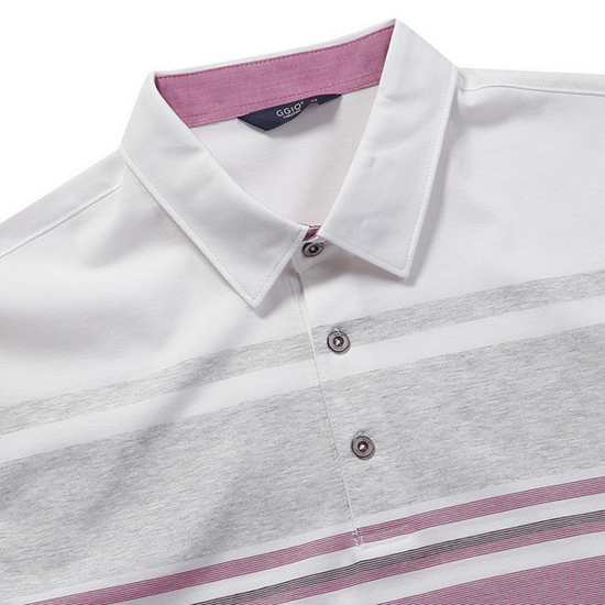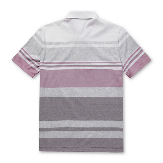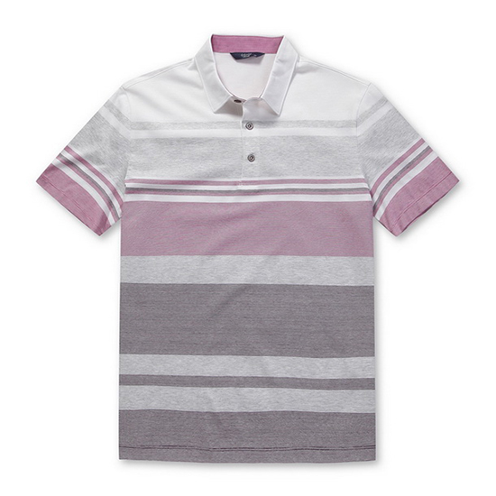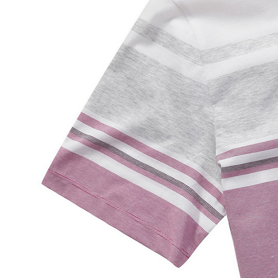 - 다양한 컬러감의 믹스 스트라이프 패턴을 매치한 남성 티셔츠.