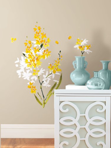 -. Title : York Wallcoverings RMK2494SCS RoomMates Yellow Flower Arrangement Peel & Stick W,