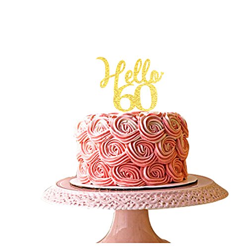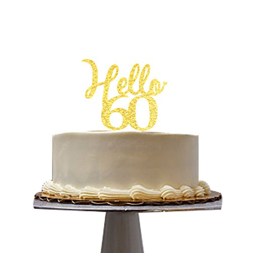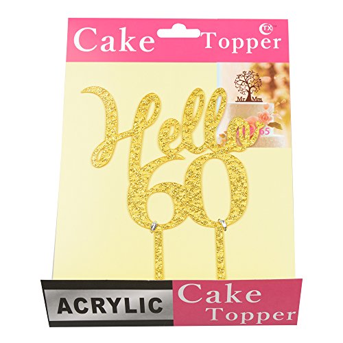 Hello 60 gold acrylic cake topper 60th birthday party decorations