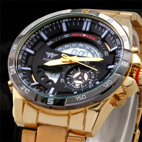 | [해외] 최고 브랜드 amst 골드 스포츠 시계 육군 군사 달력 남성 야외 방수 남성 듀얼 디스플레이 손목 |