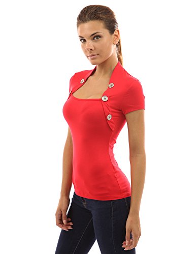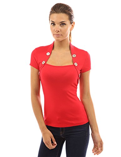 PattyBoutik Beautiful Bolero Style Embellished with Buttons Blouse Top. Model in pictures is 5 feet 8 inches (173cm) tall.