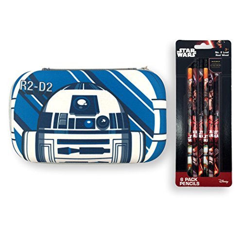 Set includes 1 R2D2 Zipper Pencil Case and 1 Pack of 6 Wooden Star Wars Pencils