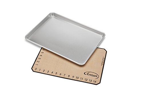 Artisan 2-Piece Professional Baking Set with Half-Size Cookie Sheet Pan and Silicone Baking Mat with Ruler Border