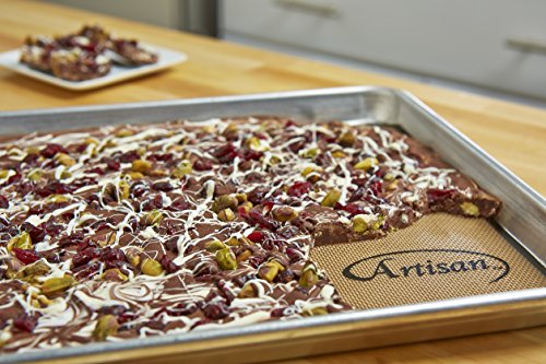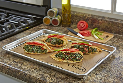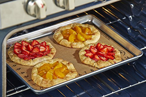 - Enjoy superior baking results for cookies, pastries, and more with this heavy-duty 18-gauge aluminum baking pan and reusable BPA- and PFOA-free nonstick silicone baking mat.