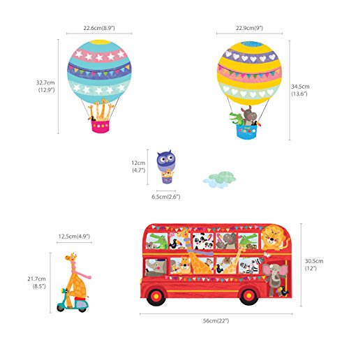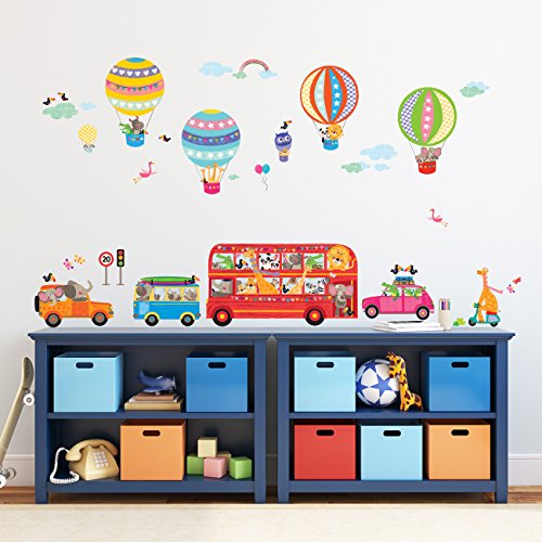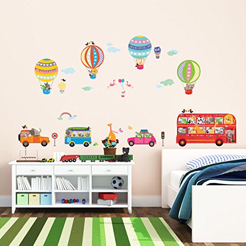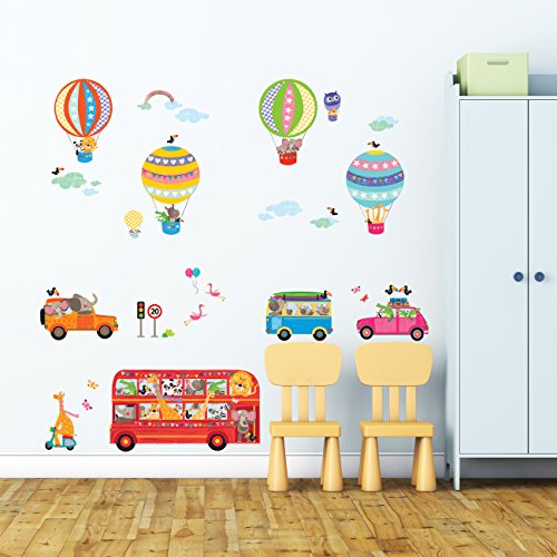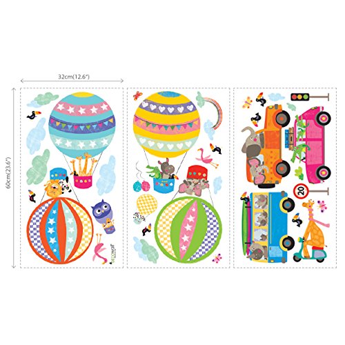 Decowall DA-1710 Transports Cars Hot Air Balloon Animals Kids Wall Decals Wall Stickers Peel and Stick Removable Wall Stickers for Kids Nursery Bedroom Living Room