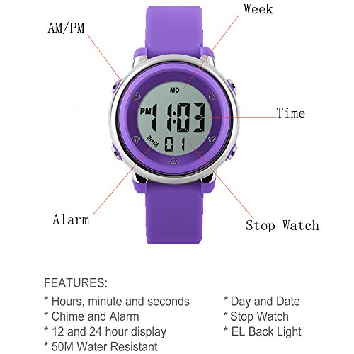 -. Title : TOPCABIN Waterproof Watch Children Wristwatch Students Jelly Color Fashion Personality Lights Purple