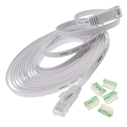 Ethernet Cable Cat 6 Flat 15 Feet White, XINCA Network Cable Cat 6 Flat Ethernet Patch Cable, Internet Cable with Rj45 Connectors - 15 Feet White (4.6 Meters)