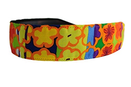 Product Description This cheery print featuring gorgeous autumn flowers in yellow, orange and green over a multicolor background will sure bring joy to your day. This is a "skinny" soft fabric headband. 0