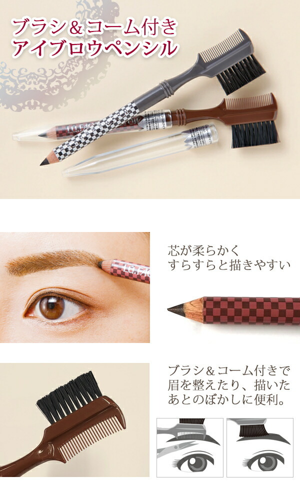 | 眉のお手入れに便利なコームと、眉のぼかし・クリーニングに使えるブラシ付き。アイブロウ/アイブロー/ペンシル/描きやすい/落ちにくい/鉛筆/眉毛/眉ペン |