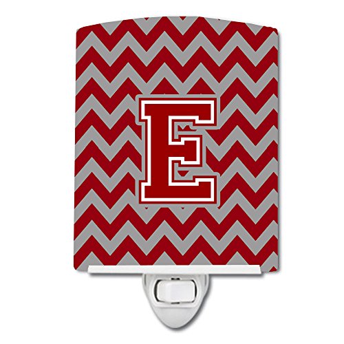 Caroline's Treasures Letter E Chevron Maroon and White Ceramic Night Light, 6 x 4", Multicolor