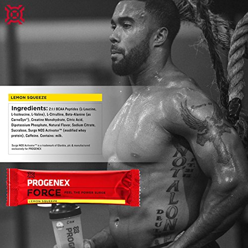 -. Binding : Health and Beauty -. Brand : Progenex -. Feature : Increase blood flow and oxygen transport with the Force?s proP.R.Ietary Surge NOS Activator? / Beta-alanine and L citrulline help prevent fatigue while providing a nitric oxide boost / Low dose caffeine increases energy levels, while sharpening mental clarity and focus / Contains Creatine and BCAAs to increase muscular strength, power and lean muscle mass. / AMAZON CUSTOMERS SAY: Best pre-workout drink! | Perfect blend to help me feel the power surge. -. IsAdultProduct : 0 -. Label : PROGENEX -. Manufacturer : PROGENEX -. PackageQuantity : 1 -. ProductGroup : Health and Beauty -. ProductTypeName : HEALTH_PERSONAL_CARE -. Publisher : PROGENEX -. Studio : PROGENEX -. Title : PROGENEX® Force Pre Workout Powder | Sports Performance and Energy Drink Supplement for Men and Women | 30 Servings in Individual Packets