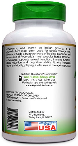 -. Feature : Why AyuNutrients :Ashwagandha supplements on the market were low capsule count or the use of gelatin (dead cow), yuck! We decided to source the strongest Organic ingredients at clinical strength and sell them at a reasonable P.R.Ice. / Key Benefits: Supports normal cortisol levels, which control appetite and play a crucial roll in fat metabolism.It strengthens exhausted nervous systems by feeding the adrenal glands that respond to stress and supports recovery after physical exertion by supporting the stress-response organs such as the adrenals for quicker recuperation and recovery from exercise / PURITY: We use only use scientifically-tested ingredients, all of which are manufactured in our US, FDA-inspected, state-of-the-art, facility, with strict adherence to good manufacturing practices. Every batch is third party tested to ensure that we only utilize ingredients that are safe and pure. / Ashwagandha can be misspelled in may ways,such as: aswagandha, aswaganda, ashwgandha, ashwangda, ashwaghanda,brahmi, bocopa , banyan,balya,churna,ashwaganda, aswangandha, ashwagandaha, ashawanda, aswhaganda, shilajit, ashawandha,aswaghanda, ashwagandah,ashwagahnda, aschwaganda, ashvagandha, ashawangda, ayush,bala. / Share:Consider ordering one bottle for yourself and another for a friend or loved one. Keep each other motivated and reach your goals together and more quickly. Ayu Nutrients stands by every quality product they make. We manufacture only premium and extra pure but high potency vitamins, capsules, pills, tablets, powders, multivitamins, supplements, topicals liquids, serums, vegan foods, and natural organic-based extracts for men, women, and children. Check AyuNutrients out today!
