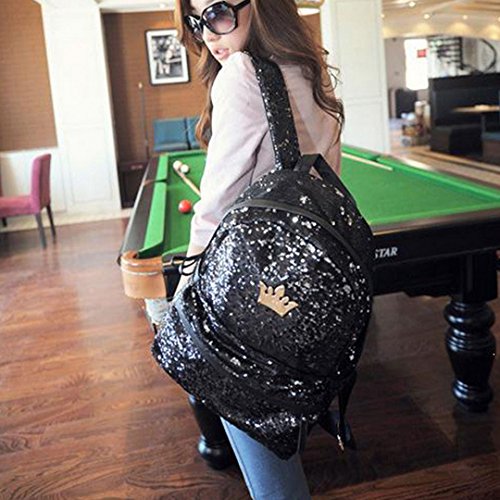 Shining glitters and metal crown decor, simple in design yet out of ordinary, chic and sweet design. Stuffed double shoulder straps, covered with sequin, comfortable and adjustable to wear. Capacious inner space, four beautiful colors, easily matches with your daily occasions.