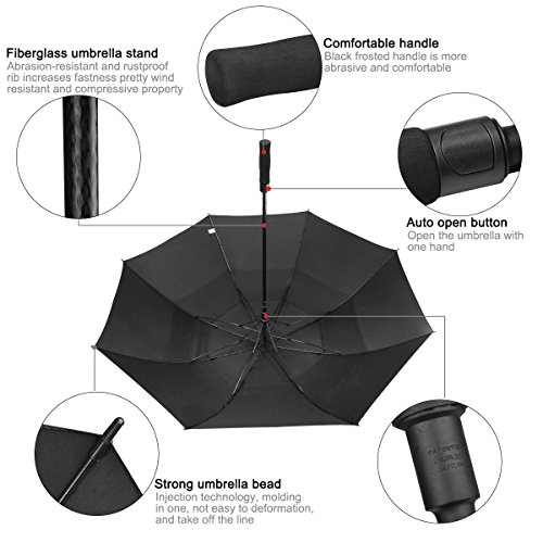 Windproof The double-canopy design creates a vent during where wind can pass through, making the umbrella much easier to handle in harsh conditions.