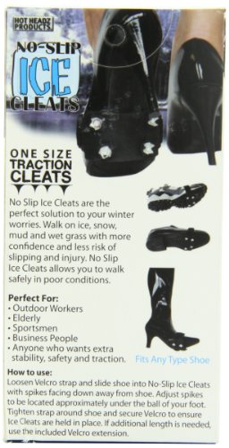 ReleaseDate : 2015-06-22 Studio : HotHeadz International Inc Publisher : HotHeadz International Inc Binding : Health and Beauty Product Description Need to wear your Ice Cleats on different types of shoes? Buying Ice Cleats as a gift and not know the shoe size? No problem. These new One Size Fits All Ice Cleats are simple to put on any shoe and are perfect for casual users, children and elderly. 0