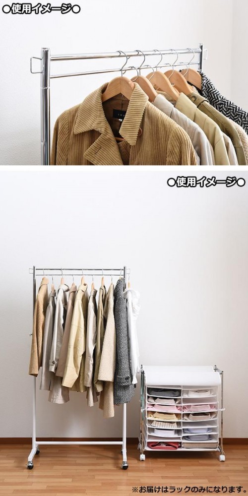 | 仕様 | 組立品 組み立て時間:約20分/1人 全体許容耐荷重:35kg キャスター:ストッパー付き2個、ストッパー無し2個 【収納目安】 夏物:約30~33着 冬物:約15~17着 ※ハンガーや洋服によって収納量が異なる。 |