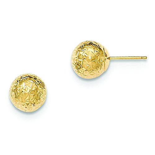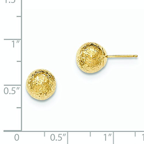 14k Yellow Gold Round 8mm Crystal-cut Diamond-cut Ball Earrings - in 14k Yellow Gold - JewelryWeb Style: QTE290388Y - FREE gift-ready jewelry box