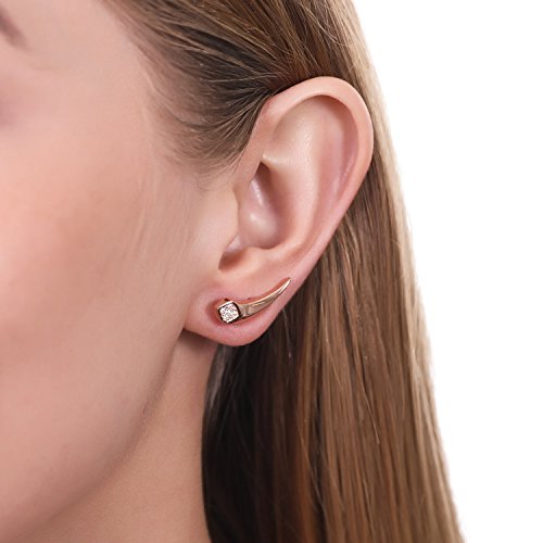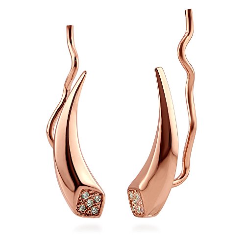 These cuff earrings' simple, sleek design is the perfect addition to a polished look. Made of rose gold flashed fine 925 sterling silver. Set with 0.05 carat round cut clear cubic zirconia (1mm) in pave setting. Earrings measure 0.9 inch in length, 0.2 inch in width. Ear wire. Imported.