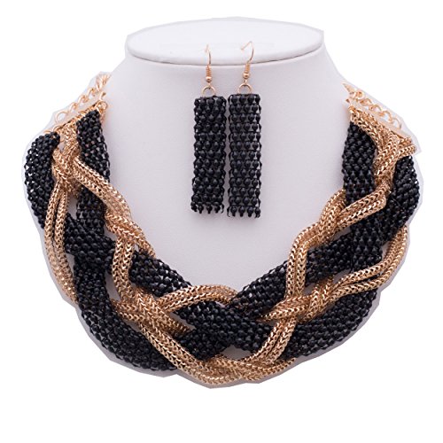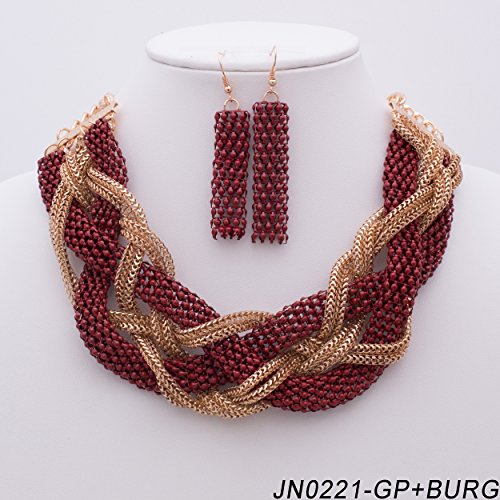 WOMEN'S FASHIONABLE COLORED CHAIN BRAID NECKLACE AND EARRINGS SET