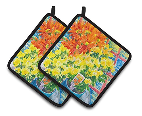 Caroline's Treasures Flower - Mums Pair of Pot Holders 6005PTHD, 7.5HX7.5W, Multicolor