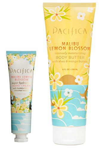 Pacifica Malibu Lemon Blossom Super Hydrating Hand Cream and Malibu Lemon Blossom Body Butter Bundle with Shea Butter, Kelp Extract, and Grape...