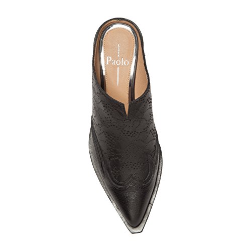 Binding : Apparel Product Description With vintage lace inspired laser etching, Waylon is a feminine take on the "Urban Cowboy." A pretty notched throat and a dramatic pointed toe top a geometric outsole with stitch down construction. Featuring a distinctively western-inspired stacked mid height heel and silhouette; this standout mule will put a little country flair into any ensemble. Linea Paolo designs women's fashion footwear featuring on trend styling, superior comfort and luxury details. Discerning fashionistas have stocked their wardrobes with our sophisticated collection of salon quality sandals, shoes, and boots since 2002. From runway ready to casual chic, Linea Paolo has a handcrafted "it" shoe for every occasion. Linea Paolo - we speak to your style. 0
