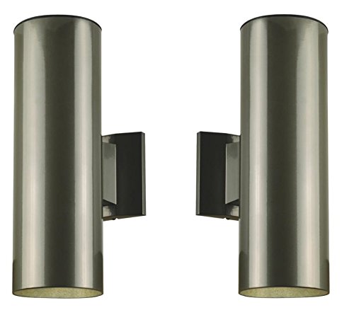 Two-Light Outdoor Wall Fixture, Polished Graphite Finish on Steel Cylinder (Two Light, Pair of 2)