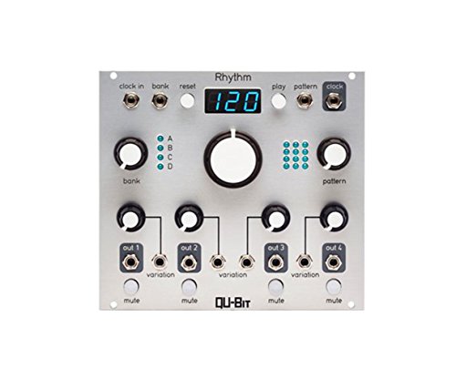 Product Description Qu-Bit Electronix Rhythm 4 Channel Pattern Generator The Rhythm is a 4 channel pattern generator with BPM display. It ships with a multitude of genre-oriented rhythms that can be altered on a per channel basis. With each parameter under voltage control, an unlimited number of permutations are available. This unique interface removes the intricate patching necessary for crafting complex drum beats, and allows the user to focus on what matters most; composing and performing music. Qu-Bit Electronix Rhythm 4 Channel Pattern Generator Features: Infinite rhythmic variation Clock divider, random gates, and other utility modes accessible Intuitive performance interface BPM display Internal / External clocking capabilities with assignable PPQN settings 0