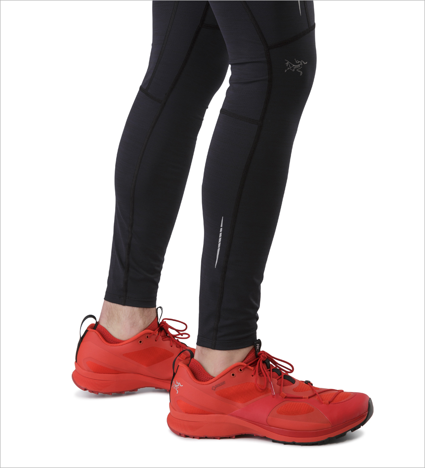 발목길이의 트레일 런닝 타이즈로 쌀쌀한 날씨의 런닝환경에서 약간의 보온성능과 써포트를 제공한다. 사용자의 신체에 밀착되는 디자인이며 신축성과 수분조절 능력이 우수하다.