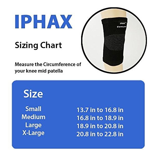 -. Feature : PROVIDES COMFORT/PROMOTES MUSCLE & JOINT RECOVERY: Iphax Knee Sleeves provide comfort & can be worn every day to help you reduce pain and recover faster. Relieves muscle stiffness, extra soreness & offers rejuvenating relief from arthritis, osteoporosis, tendonitis, pain & discomfort, allowing you to perform at your peak in any situation. / Bamboo charcoal fiber, 13-20 mmHg compression knee sleeve --- Good knee support with no stiffness. No itching. No slipping. / PAIN RELIEF : Relief pain from osteoporosis, post-surgery pain, swelling as well as strains and sprains. Anatomically shaped: Prevent injuries and accelerate your recovery. Great for healing and rehab. / WEAR IT EVERYDAY: Easy to wear thanks to its light and soft material. Unisex. Can be worn all day. Perfect for cross training, weight lifting, gym workouts and any other types of exercises. / LIFETIME WARRANTY 100% MONEY BACK GUARANTEE: Your satisfaction is our preference; because we think you should try us out without any risk. If IPHAX Knee brace doesn't meet all of your needs, we'll repay you the full purchase P.R.Ice
