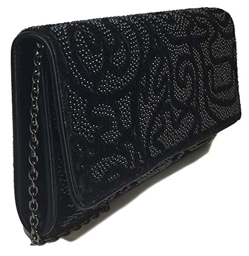 Product DescriptionSondra Roberts Beaded Haircalf Clutch in Black Color0