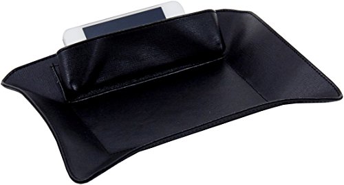 MENS BLACK LEATHER COIN VALET TRAY FOR GLASSES KEYS PHONE JEWELRY CATCHALL GIFT