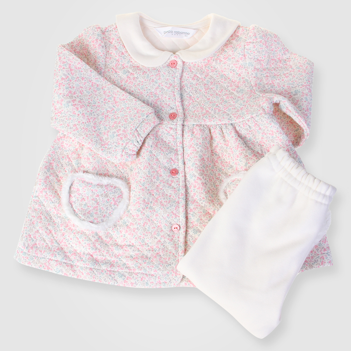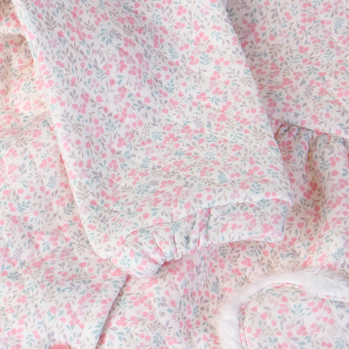 - 예쁜색상의 꽃무늬가 잔잔하게 나염처리되어 있어 여성스러우며, 겨울철에도 입을 수 있도록