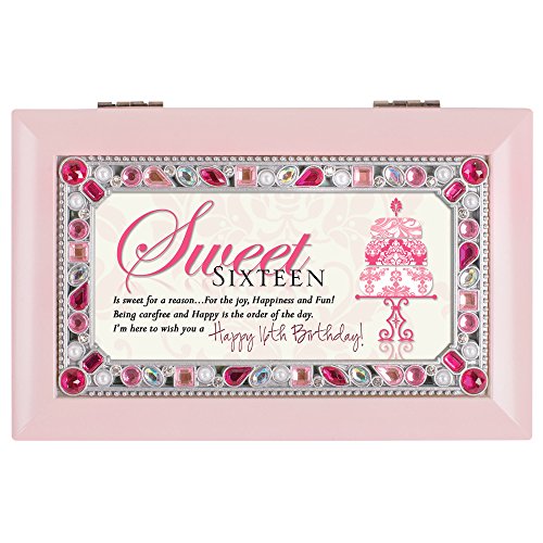 Sweet 16 Jeweled Pink Jewelry Music Box - Plays Tune You Light Up My Life